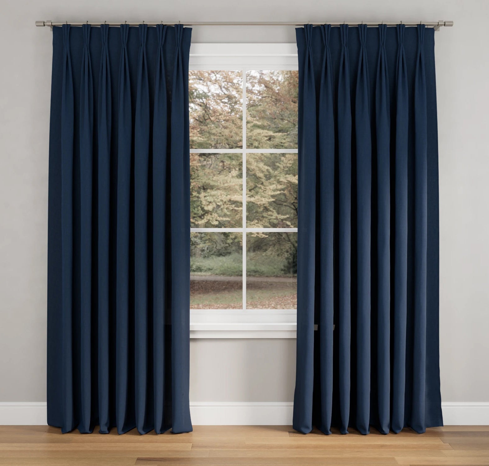 Heavyweight Texture Knit Marine Pinch Pleat Light Filtering 200% Fullness - White Lining