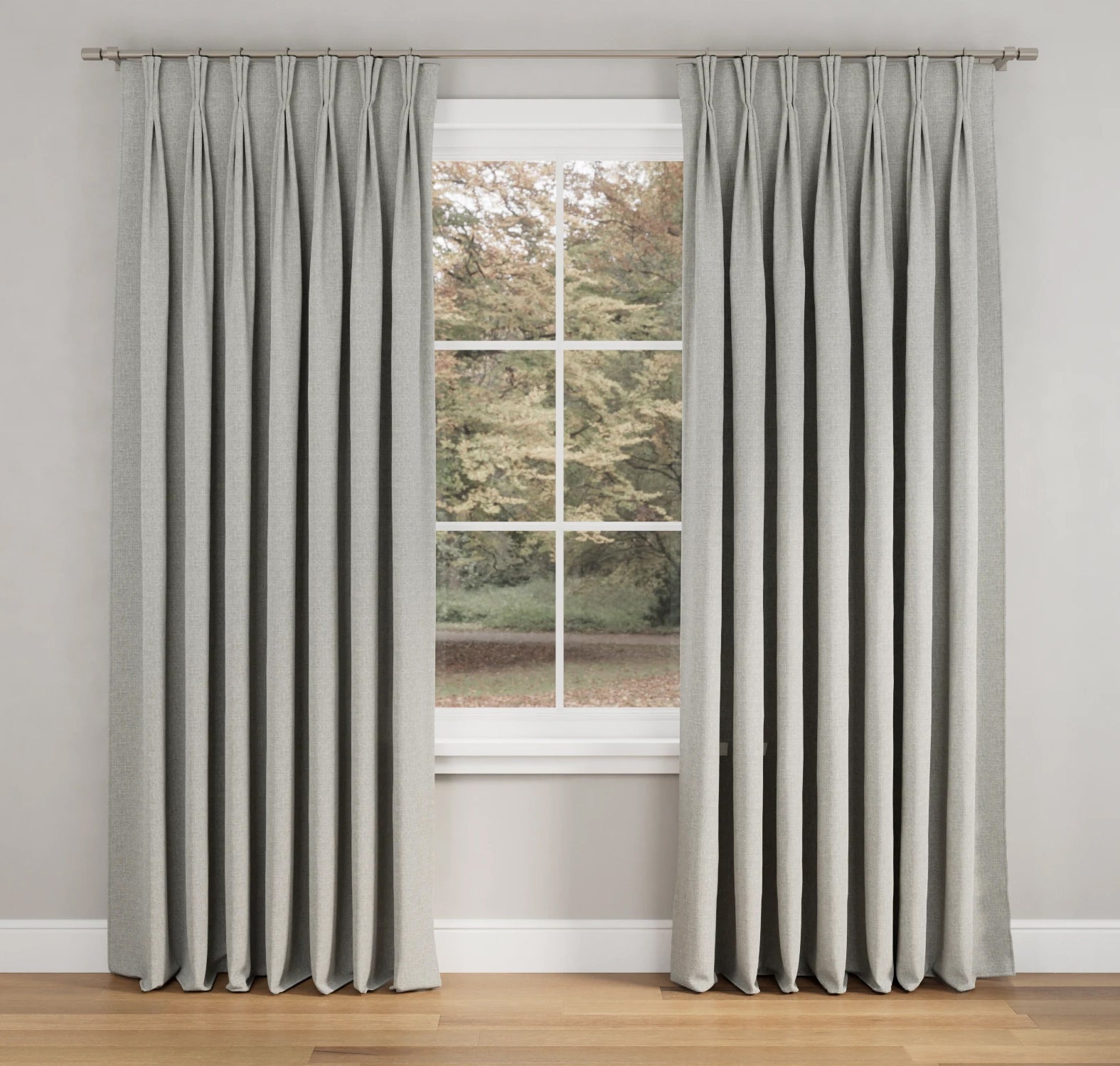 Oxford II Grey Pinch Pleat Light Filtering 200% Fullness - White Lining